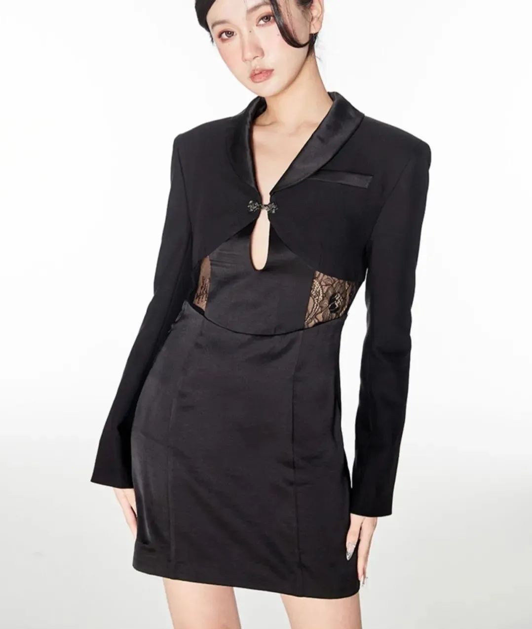 缎面和蕾丝的拼接,弱化腰和后背的肉肉,显瘦这块就难拿捏了。