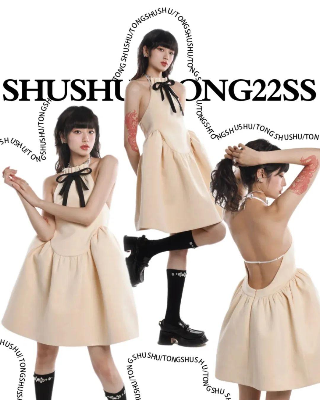 挂脖➕蓬蓬裙,露出显瘦的锁骨,下摆U型拼接视觉显腰身还没有束缚感。