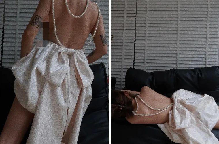 ㊼ 要优雅复古superr的应该是所有国内设计里好的了。这件珍珠链露背的长裙,背薄的姐妹穿绝了。