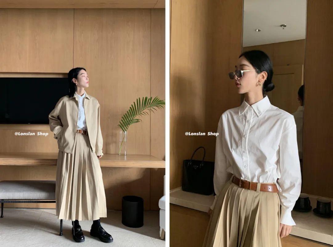 ㉖ 喜欢学院风的必须要看看百褶裙。尤其这种中长裙,梨形身材福音,搭配衬衫穿人可板正了。