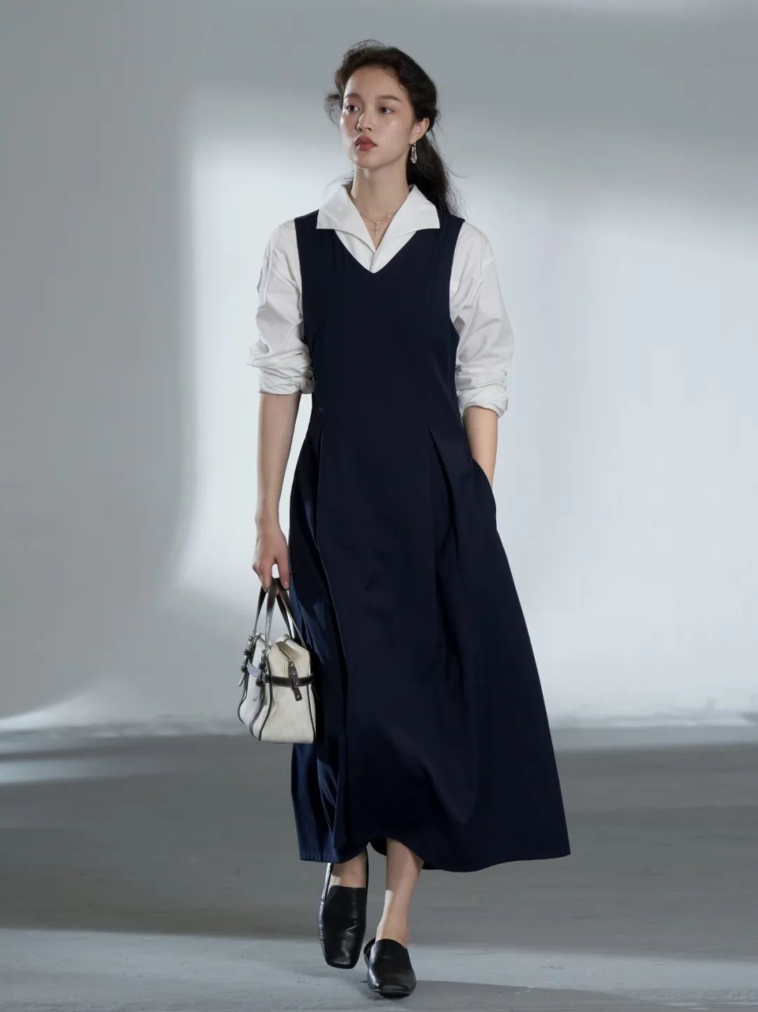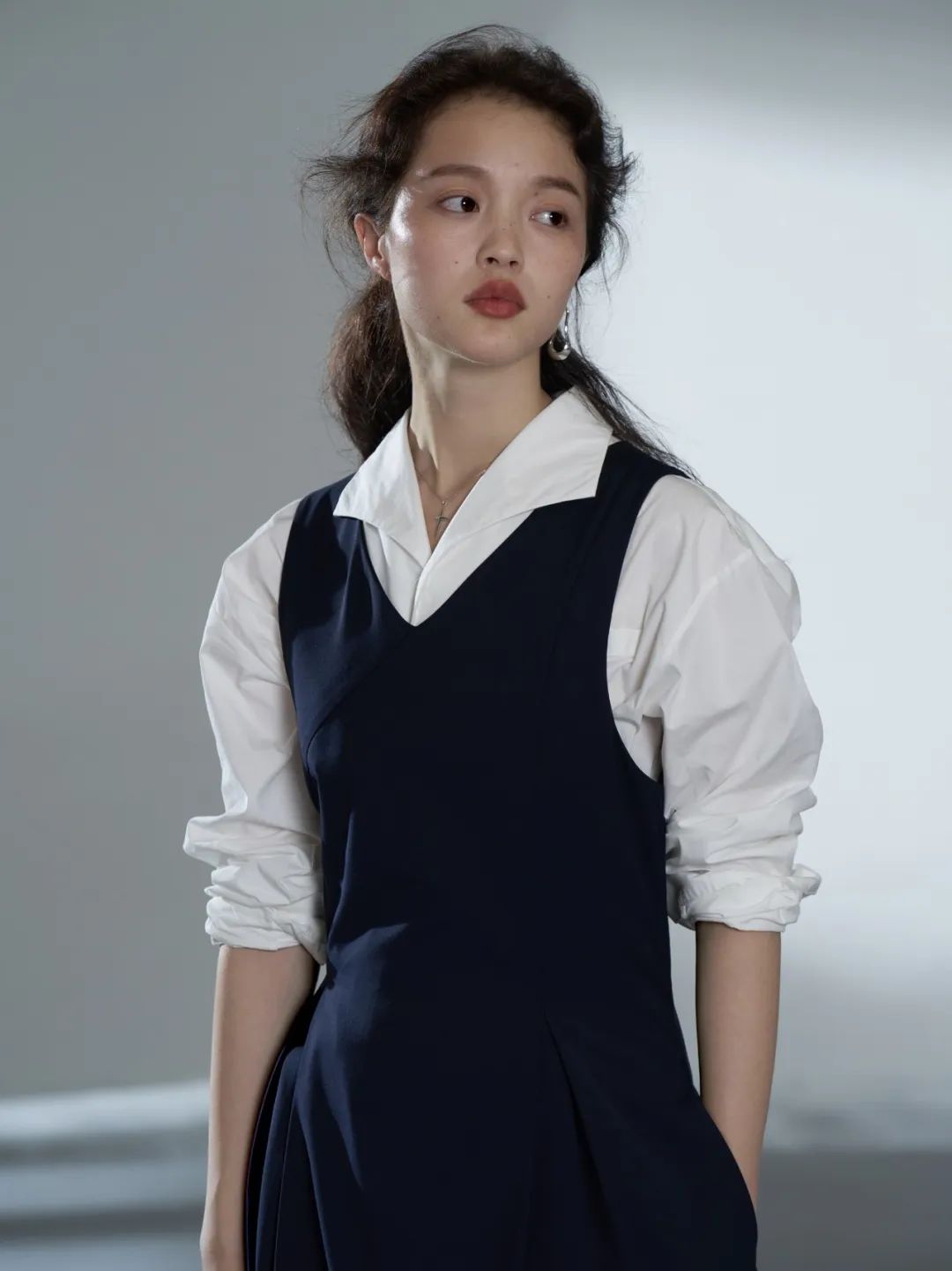 背心裙玩法也很多,叠穿衬衫或者背心,都很容易出层次感。
