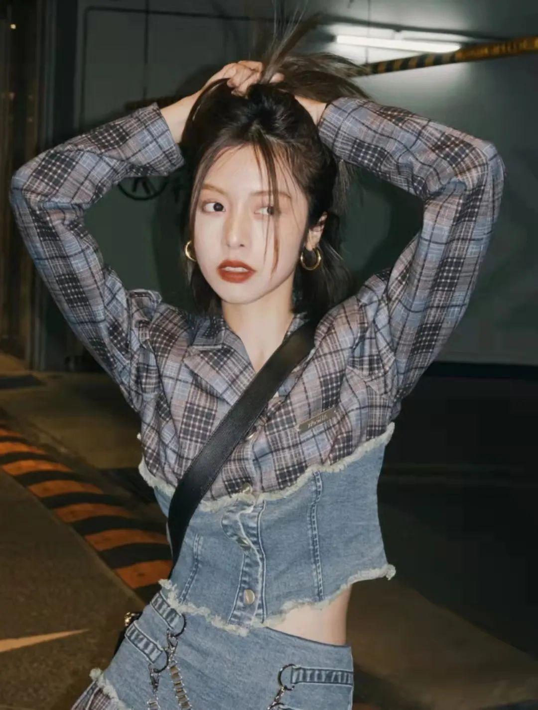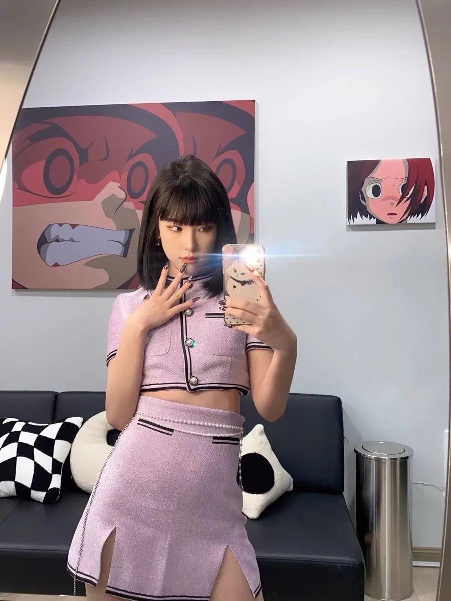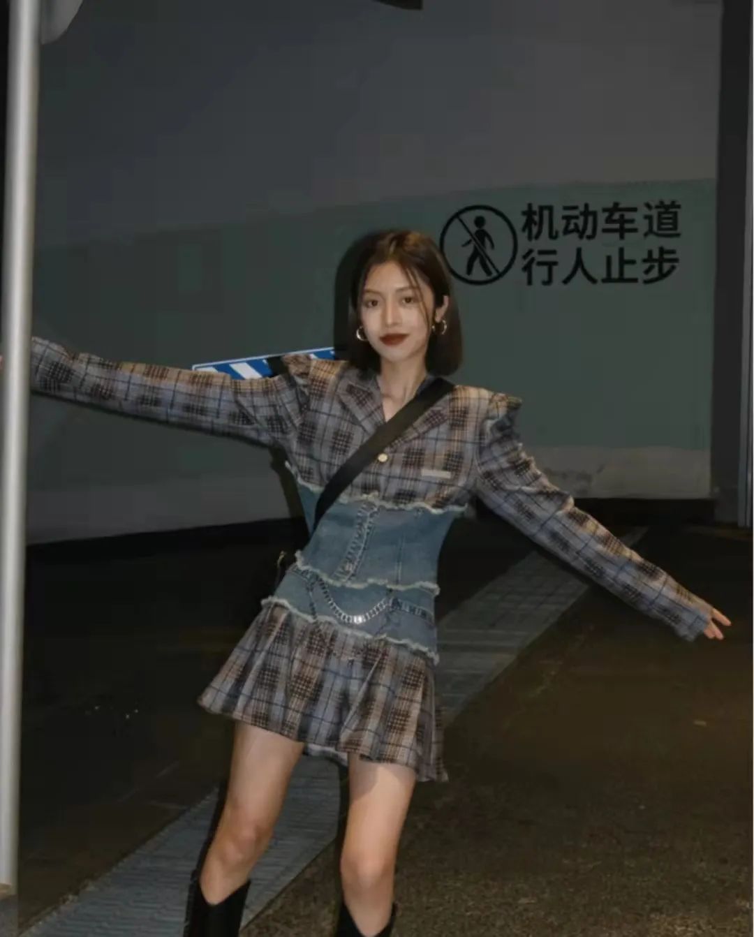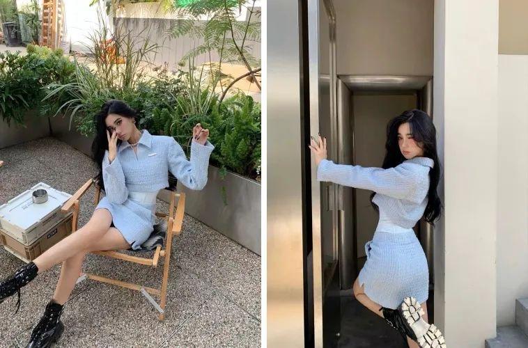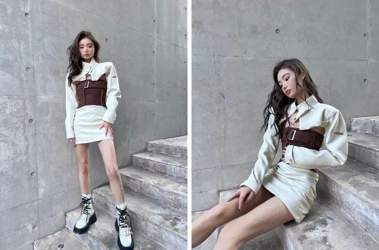 北方天气还凉的,可以学虞书欣搭配短西装外套,感觉过甜的可以用靴子拉回帅气值。