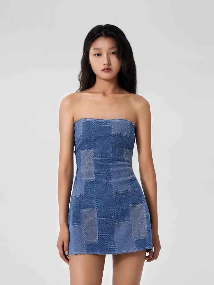 ⑧ 异曲同工的还有这套抹胸拼接套装