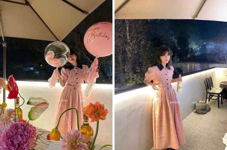 ㉑ 上岁数的姐妹(不是),喜欢粉色又担心俗气的,可以试试这种拼接条纹的粉色连衣裙。