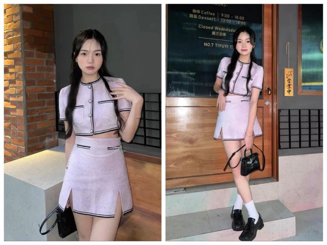 ⑩ 淡紫色小香风套装裙,辣妹必备!