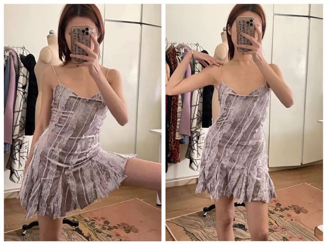 ㊳ 蕾丝拼接丝绒面料的裙子没想到这么好看,让不那么容易显好的丝绒布变得特别高级