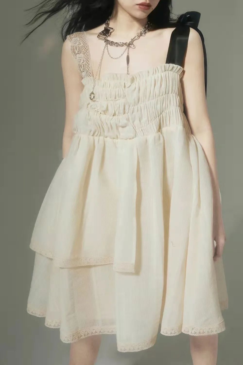 ㊷ 仙的还得是白色连衣长裙,蕾丝拼接的更性感。