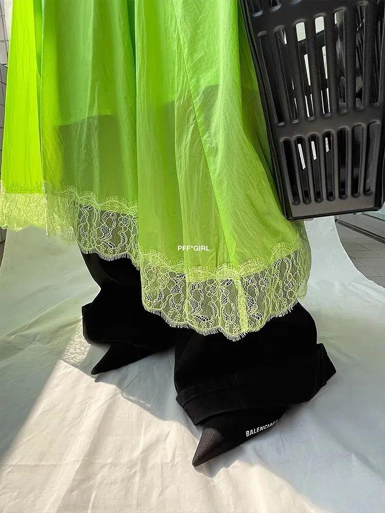 ⑭ 选择欧根纱、轻纱、雪纺这类材质的裙子,仙气还能再升一个level。