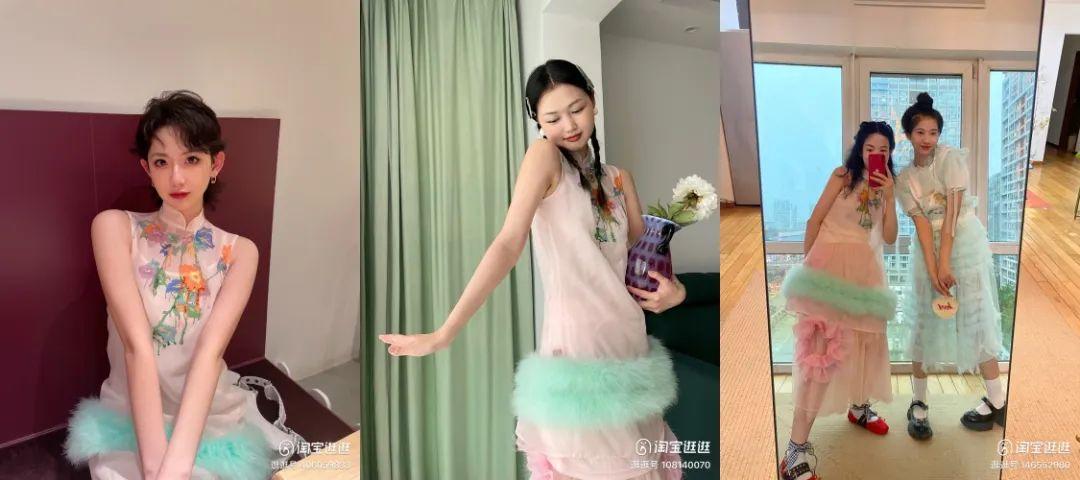 旗袍领设计加上毛毛裙摆真的是很灵,裙子颜色也嫩嫩的,皮肤白的姐妹穿绝了!
