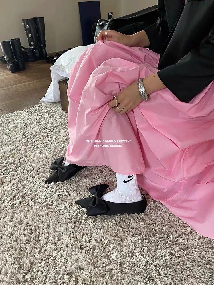 ㊻ 这套黑色翻领+粉色公主袖的上衣搭配高腰长裙的套装简直优雅到家了。