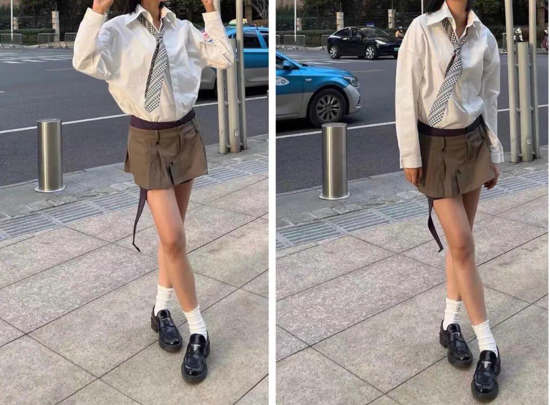 衬衫+领带搭配吊带裙这么好看属实没想到