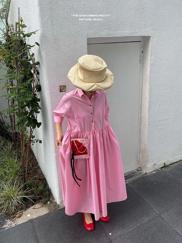 ㉒ 衬衫裙用粉色,中性感也能中和了粉色的腻歪感。