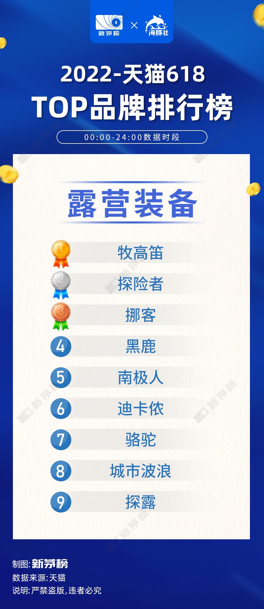 但在新茅榜统计数据中,看到百观科技统计了天猫户外露营品牌在618销售TOP排行榜,现在分享给大家: