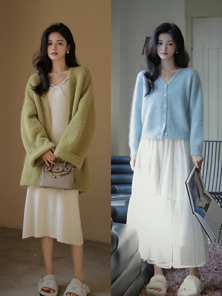 这些针织衫配半身裙就的有韵味,一条温柔的黑色半身裙配上针织衫,浪漫又知性,而且也不分年龄。