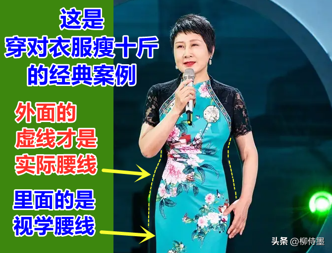 仔细看这件衣服就会发现,实际腰线和视觉腰线的位置是不一样的。