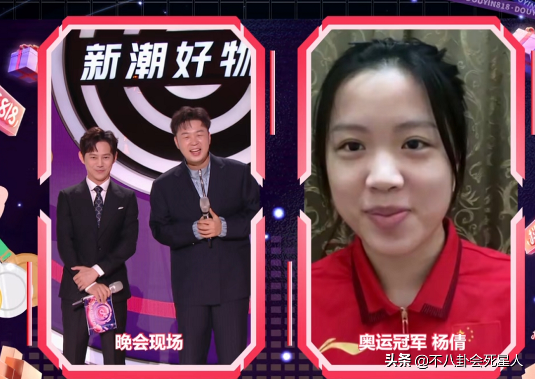 当晚除了明星们的表演外,还有一个环节让人惊喜,晚会还现场连线了奥运杨倩、陈梦、苏炳添,跟大家一起分享奥运趣事!
