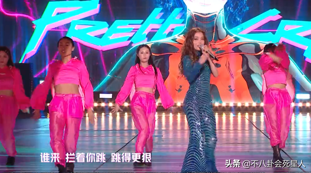 除了娜扎外,当晚造型和状态都在线的要数容祖儿了,一身水蓝色亮片裙裤登场,配上大卷发造型相当酷飒!