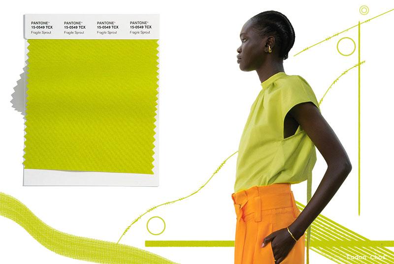 潘通15-0549碎芽脆弱的萌芽是一个阴影,人们当然质疑哪一类。是黄色的吗?是绿色的吗?后,我选择了黄色(很),因为它的颜色强烈,肯定会让观众多看一眼。如果你真的想要打造一套能让人产生这种印象的服装,那就跟随Eudon Choi的脚步,将橙色与裤子搭配。