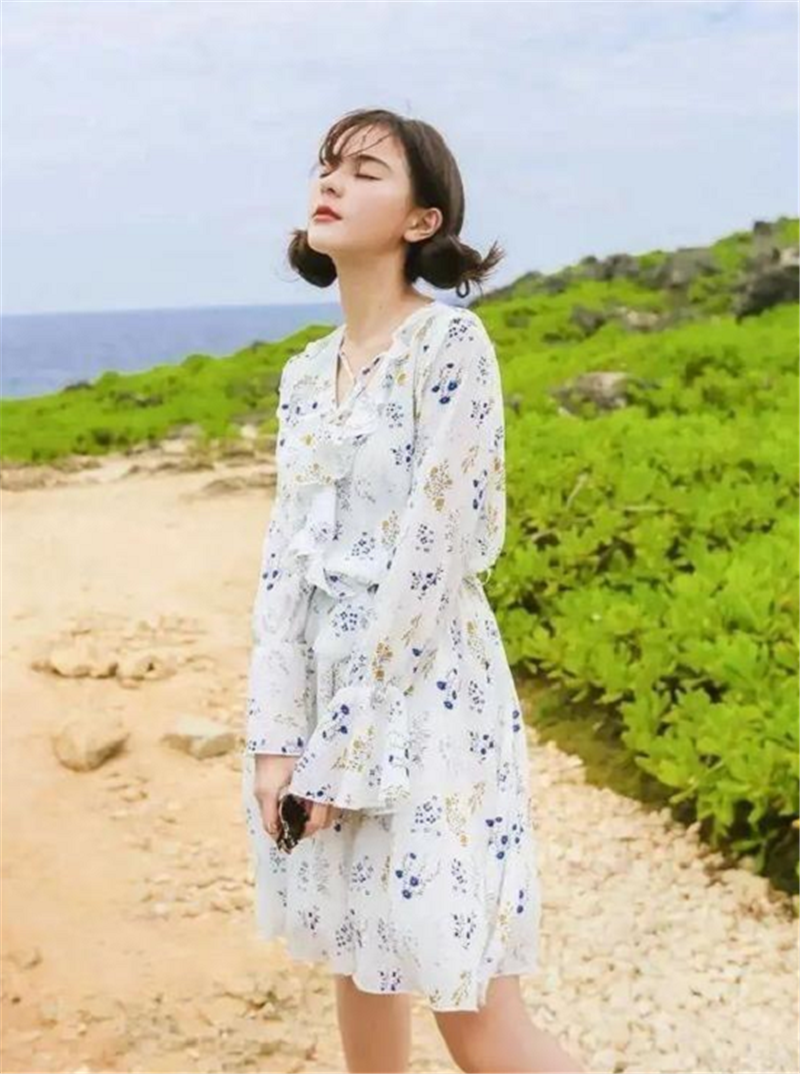 如果身材好的话,可以尝试下修身款碎花裙,