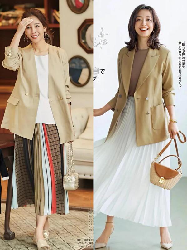 中年女人不同于年轻少女,可以选择嫩色、亮色的西装。她们更加追求自然、大气的优雅与端庄气息,而米色西装刚好符合这一点。配色清爽又大气,穿在身上将温润、端庄的知性气息发挥到,使得柔和的氛围尽情诠释。穿米色西装的中年女人温润如玉,如同被打磨掉棱角的鹅卵石一样,浑身都散发着圆润与柔和。