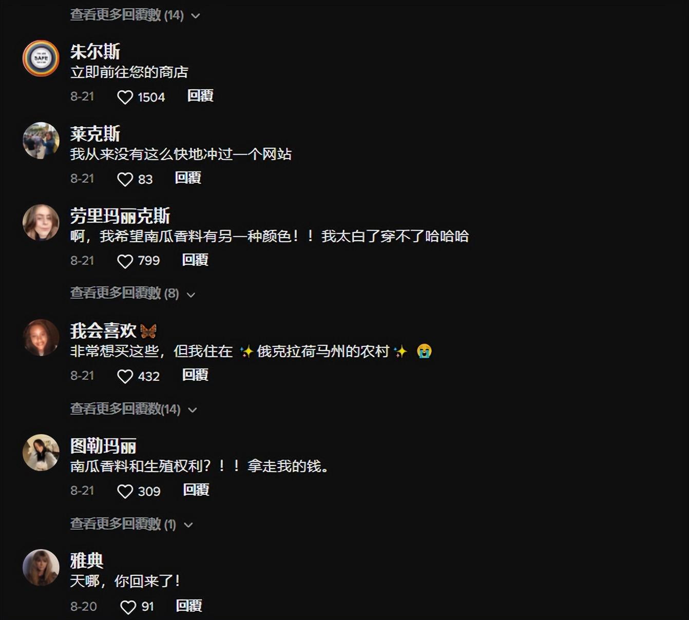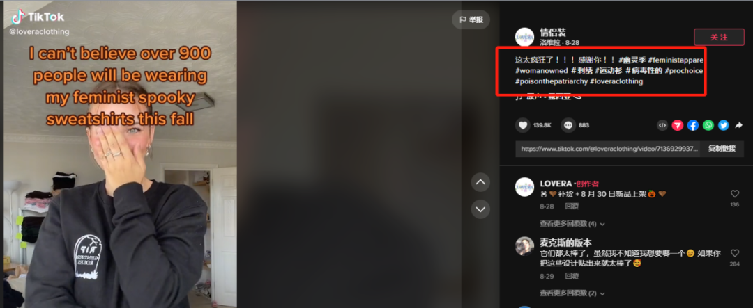评论区挤满了求购的用户,品牌也在一夜之间风靡 TikTok ,收到数百个订单。