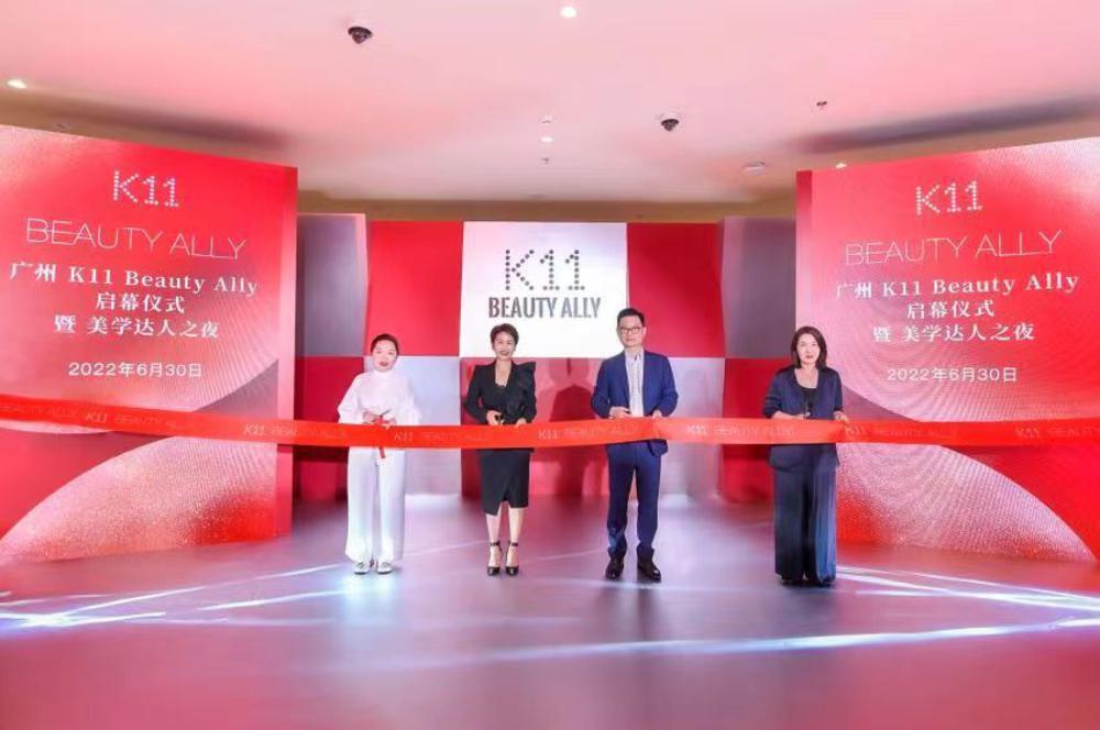 广州K11购物艺术中心Beauty Ally国际潮流美妆区开业剪彩现场围绕K11“艺术·人文·自然”的概念,为了贴合广州K11年轻客群的消费偏好,此次落户广州K11的品牌店铺都采用新形象设计,如YSL Beauty落成白金形象店,用大面积的白色元素,展现出品牌年轻、时尚的理念;LANCOME以品牌全新的“菁纯金”为灵感,将店铺打造成奢华的护理空间;LA MER也升级呈现“G5.1”概念店铺,五彩的大型鱼缸吸睛之余,也增添了盎然活力。