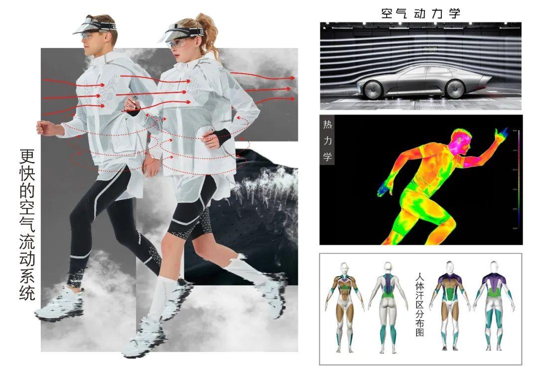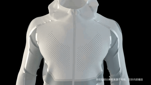 服装还根据人体汗区分布,借鉴汽车空气动力学原理,打造的360度排汗系统,可以帮助跑者在跑步期间快速排汗,服装面料粘合一层耐风雨的透气薄膜,自适应纤维增强了透气性同时起到了锁定温度的作用,让跑者身体始终保持恒温。