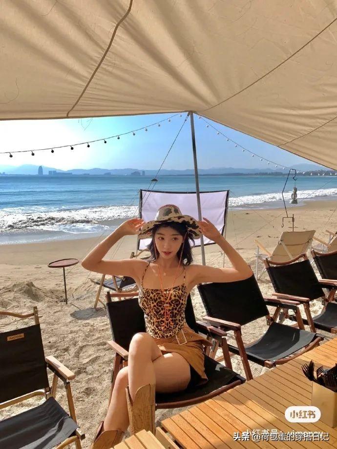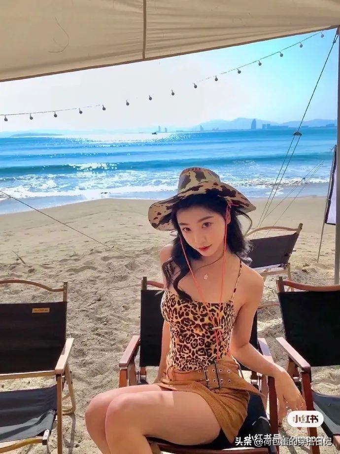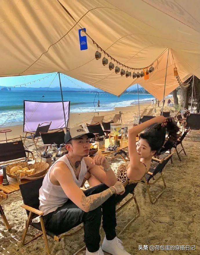 易梦玲的海边露营写真,照片中还出现了马师的身影,对比马师随意的老头背心易梦玲精心搭配了西部世界风的露营穿搭,豹纹吊带工装短裙搭配奶牛图案宽檐帽,(这顶帽子之后还出现在了马思唯的头上)全身只要一百块,会穿又会买~