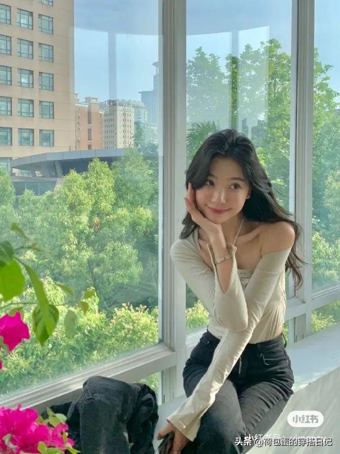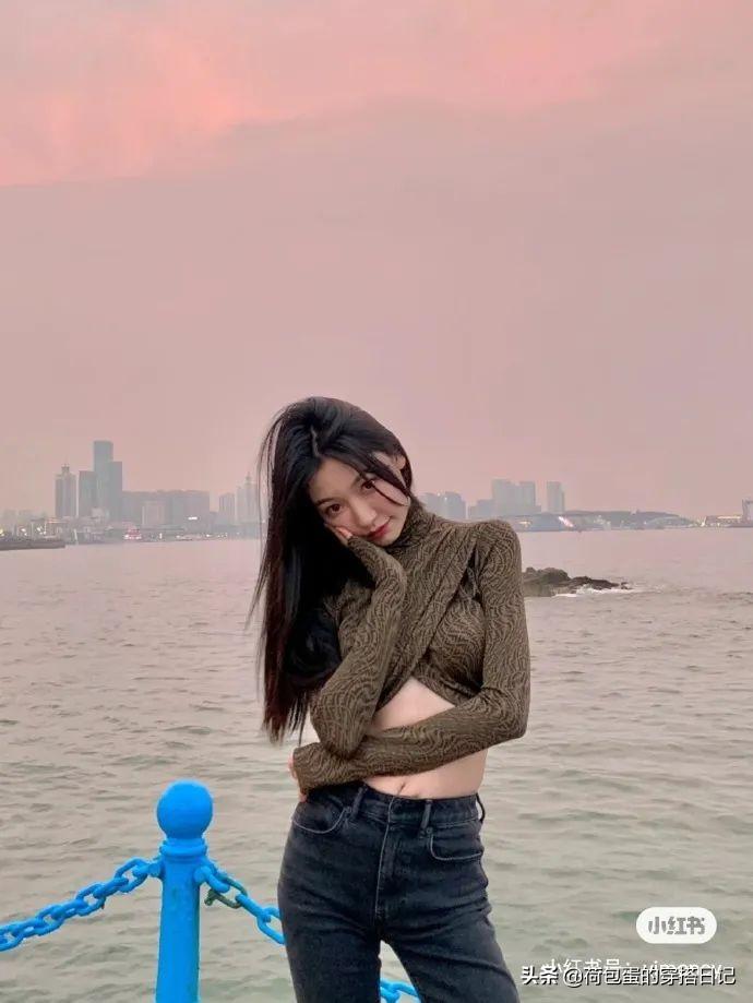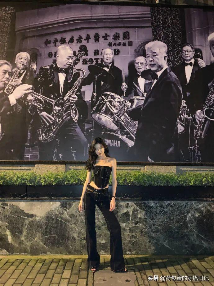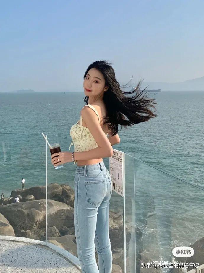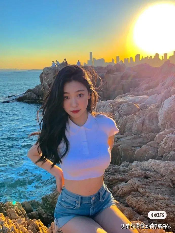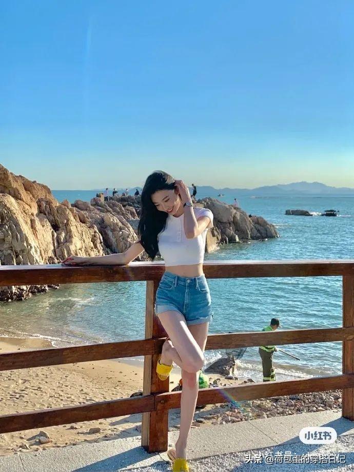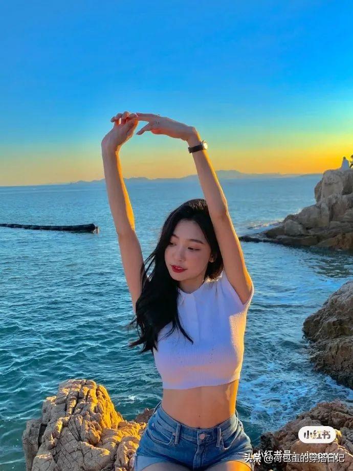 多看易梦玲的穿搭就能发现她的上衣挑选法则就是“万物皆可短”,比如穿 POLO 衫虽然领口扣到上面一颗,半身照看起来乖巧学院风,但仍然是一件修身露腰短上衣!仔细看易梦玲穿牛仔热裤竟然还需要用橡皮筋改小裤子腰围,美女子的腰也太细了吧!