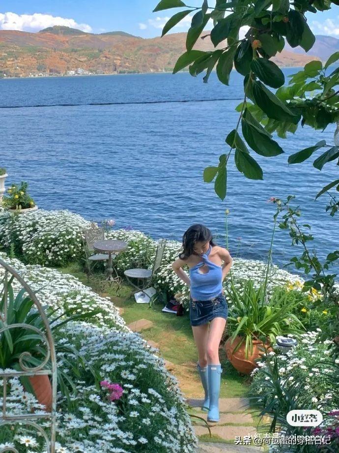 说起易梦玲那么一定不能少了海边写真,这套海边写真应该是易梦玲近出圈的一组了,小碎花吊带上衣来自美国品牌 house of cb,近许多明星网红上身,大有赶超 BM 的架势,纯欲风本欲!