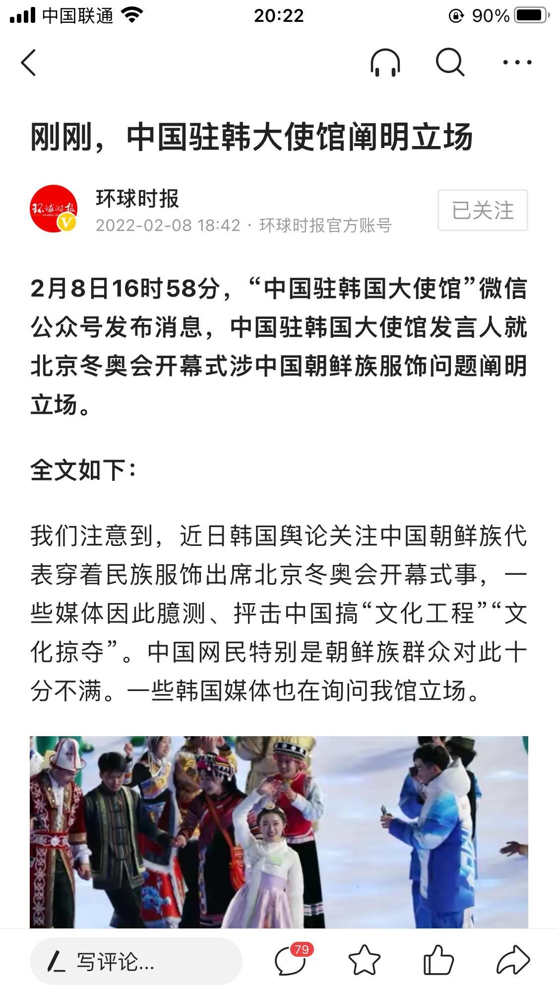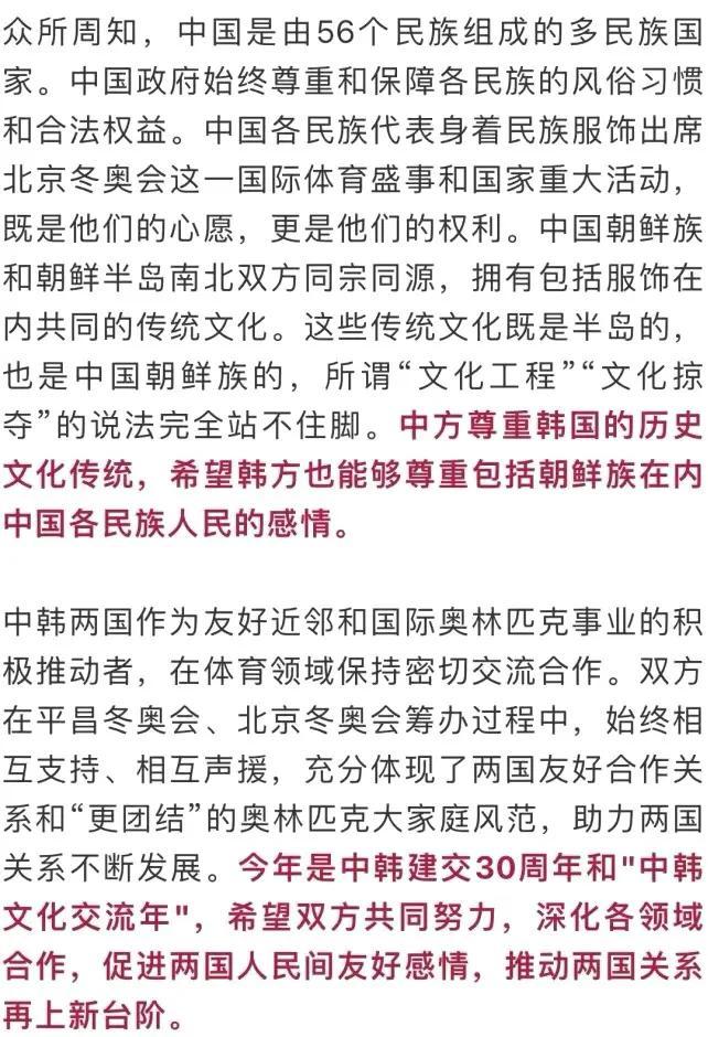 在北京冬奥会开幕式上,传递国旗时有我们朝鲜族小姑娘身穿朝鲜族传统服饰出现,引起韩国民众及个别媒体的“关注”,说我们是搞“文化工程”、“文化掠夺”。
