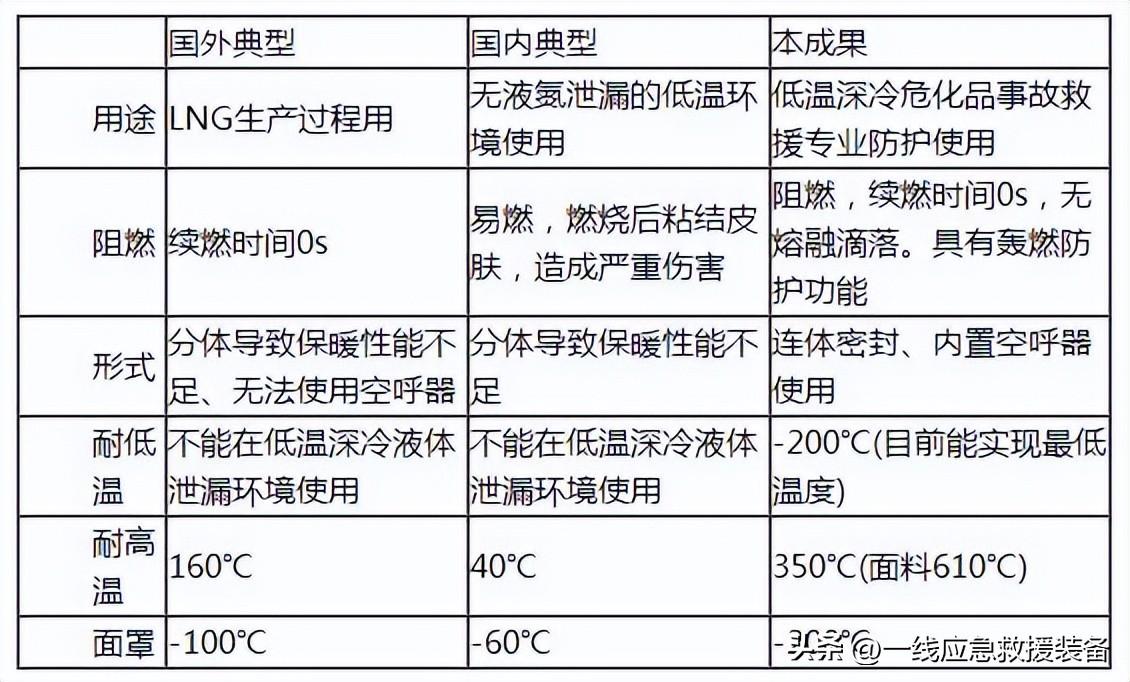 (1)功能突破,既具备低温深冷防护功能,又具有防轰燃、阻燃、隔热防护功能。