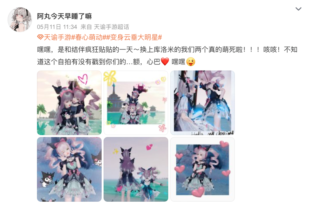 在微博,#天谕捏脸#话题有近1亿的阅读。即使已上线近两年,还有用户时不时分享新捏出的角色形象。也经常有女性玩家感叹游戏的“美貌”,拍照、截图,分享在社交网络上。玩家的二创意愿强,经常产出精美的图片。