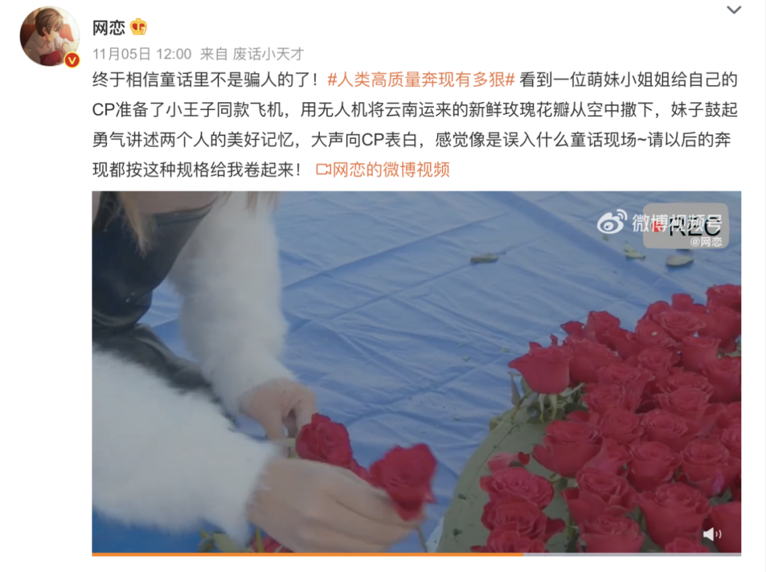 11月5日,一对玩家CP网恋奔现“翻车”事件,吸引了不少人围观。某mmo手游一女玩家与游戏内cp约定在结契100天纪念日奔现,并策划了一场伴随着玫瑰花瓣雨的花式告白,却发现自己的CP是一个女生。