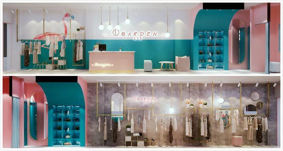 在线上店铺,产品设计、页面推荐、模特展示等方面都是多单款呈现;在线下店中,Garden Lis 也有对应的陈列手册,每一杆的衣服都能互相搭配。