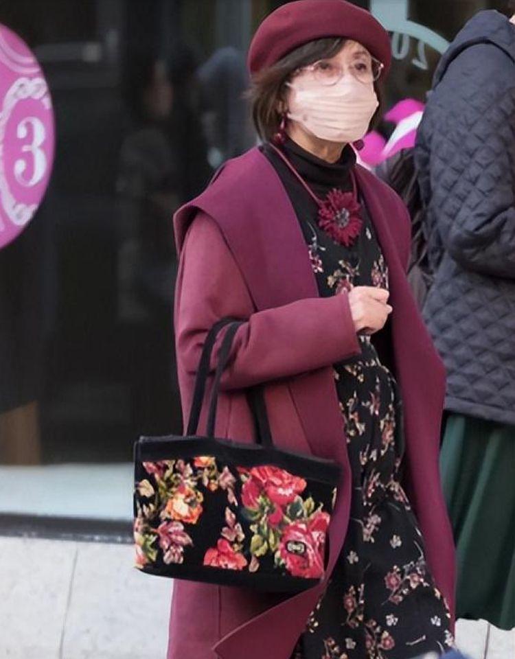 这位日本奶奶就做了很好的示范,贝雷帽与大衣颜色保持一致,上下配色呼应避免让帽子在造型中显得突兀,整体性更强。