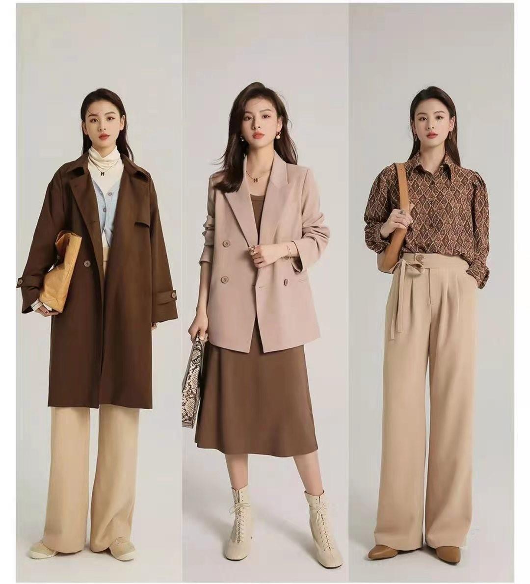 大地色系适合亚洲人肤色,无论是黑黄皮女性都可以大胆尝试,暖色调色系显温柔。卡其色西裤利落大方,西裤面料垂坠果强,浅色色系记得用深色系服饰单品进行色彩平衡。