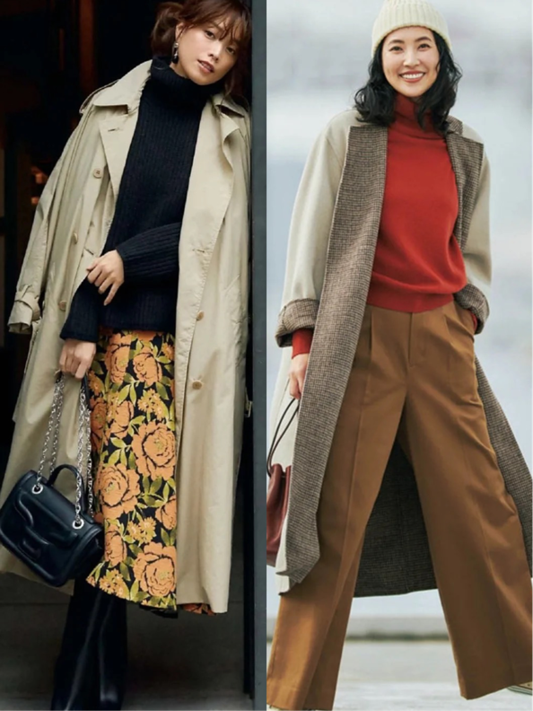 大衣这种单品,秋冬季节肯定是不可缺少的,这些日本女人也会用这种简单的服装去叠穿。