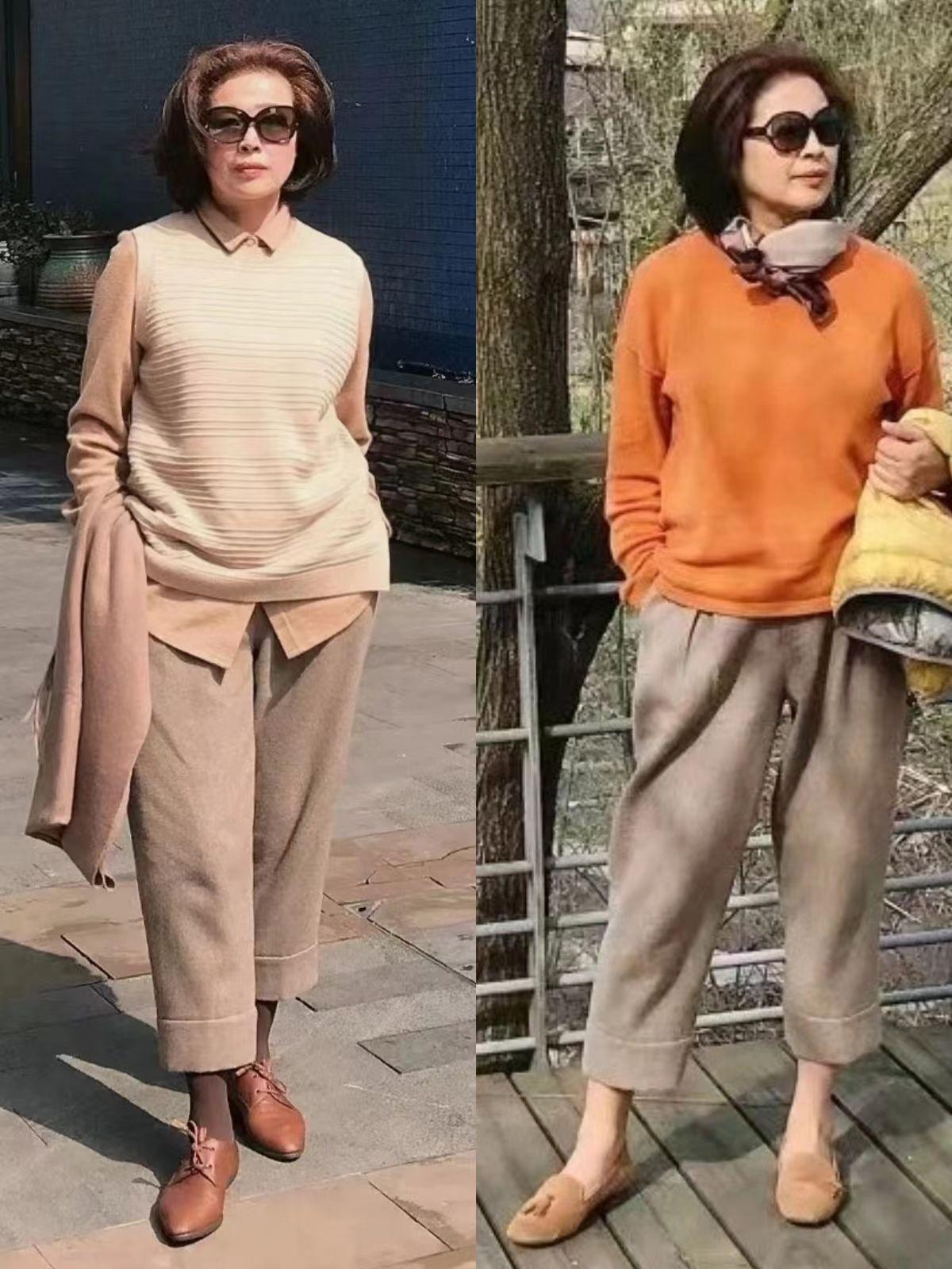 很多中年大妈年纪越大,越注重衣服的质感,她们不会买很多衣服,也不会为了时髦而时髦。在冬季,像60+博主后街白娘子这一年龄阶段的人,都会选择一些舒适又有质感的基础款凹造型。