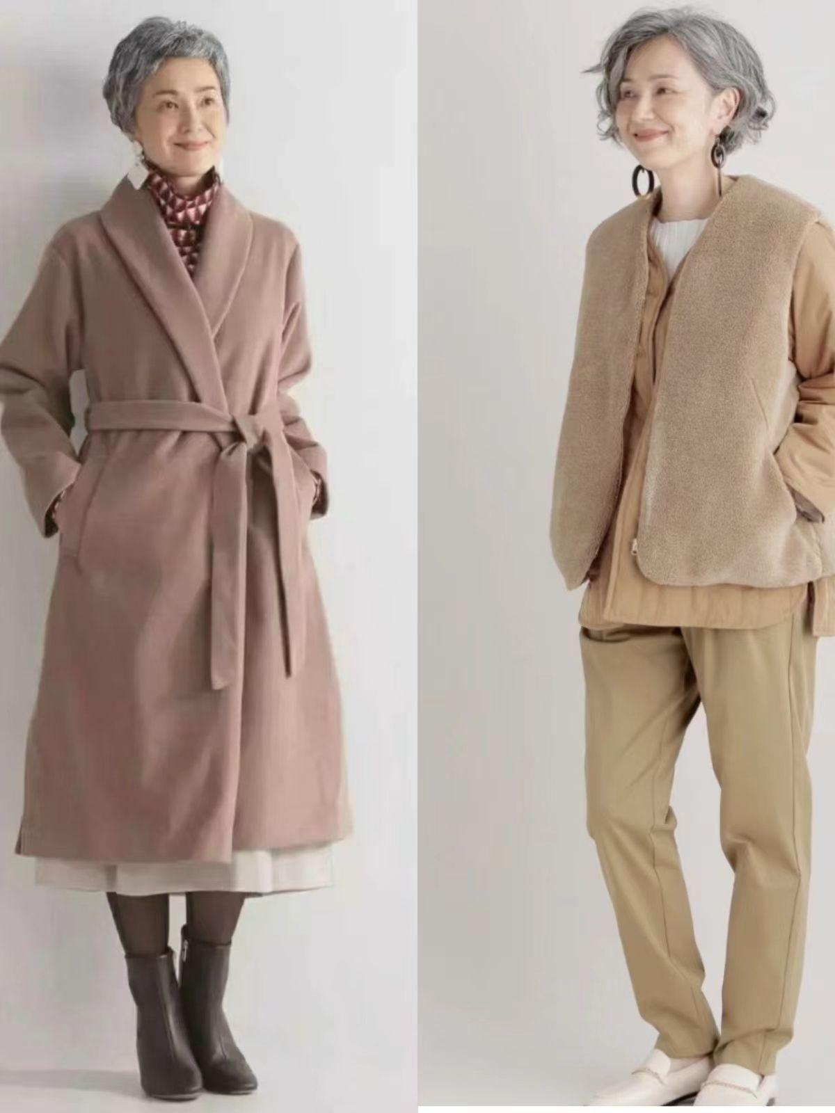 很多人老了之后,都会选择长大衣或者摇粒绒单品凹造型,而在颜色上,受欢迎的一定是大地色系了,比方说驼色、米色、浅棕色或者燕麦色,既温暖又适龄。