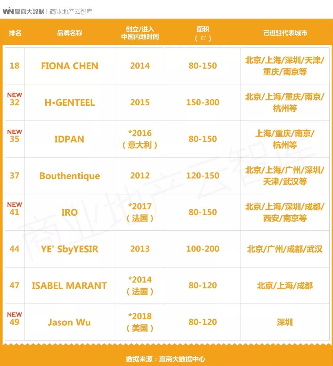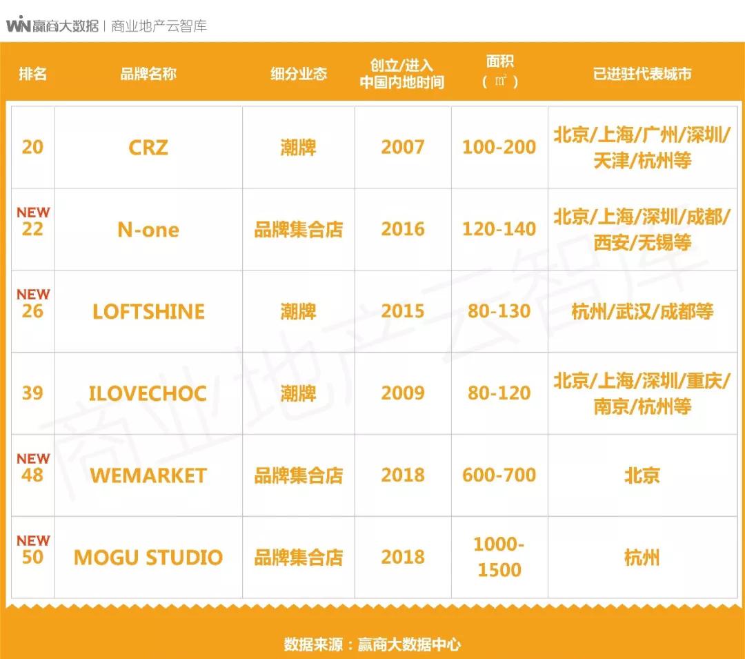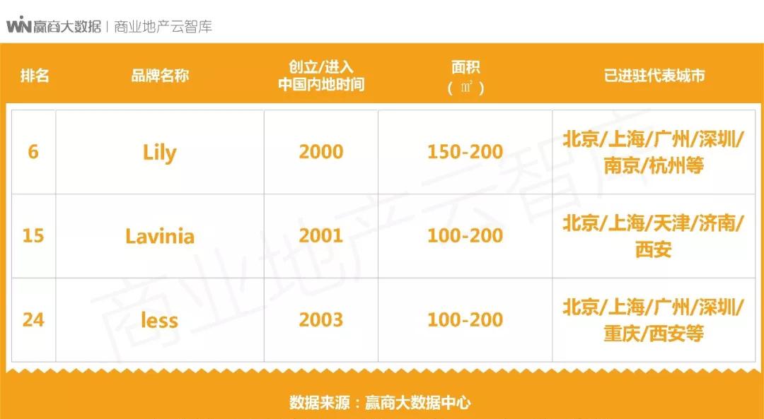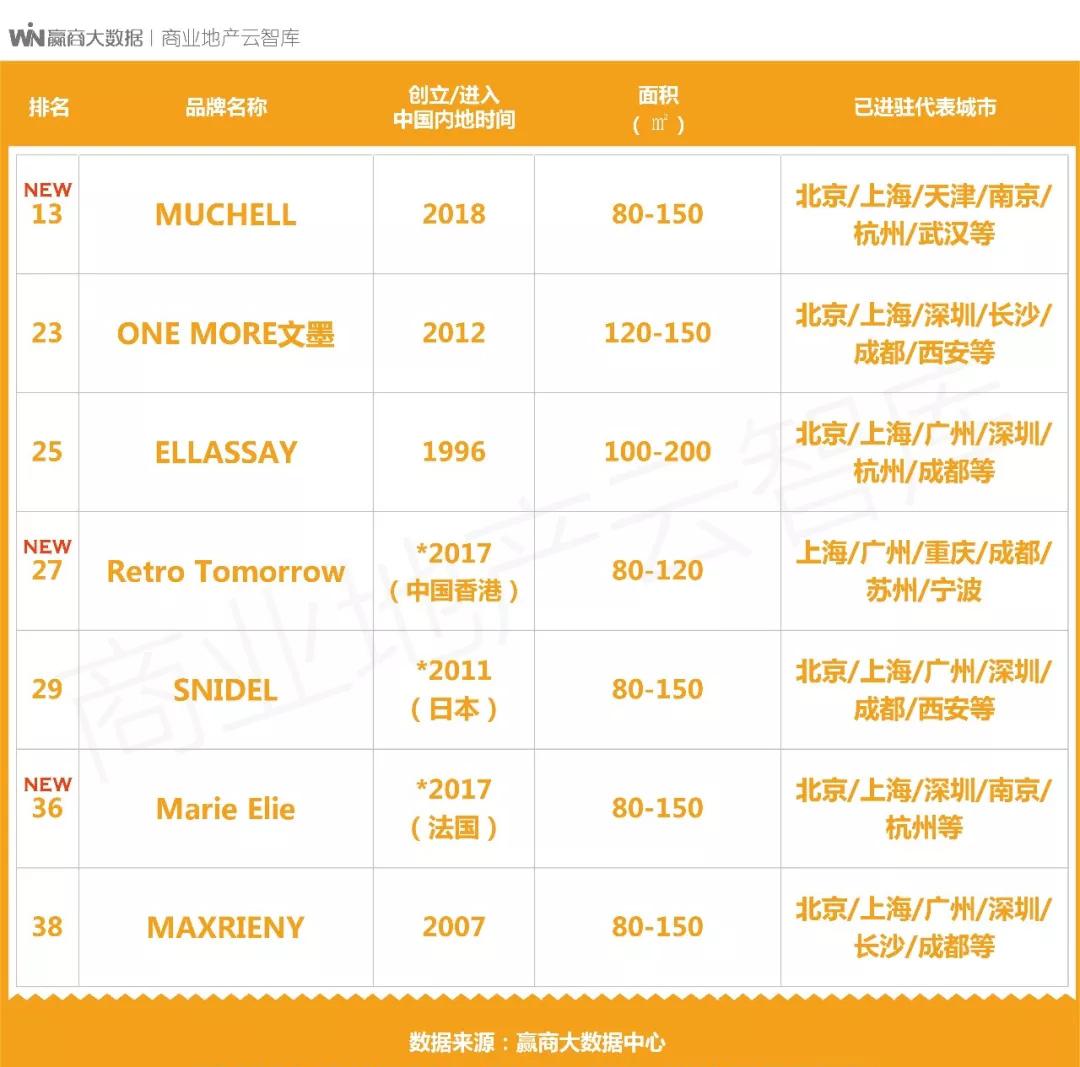 特别说明:未上榜品牌,除暂未达到我们的测评标准外,还可能存在如下原因:①未在赢商网上传品牌信息;②已在赢商网上传品牌信息,但相关数据因久未更新而无法采用,或品牌联系方式失,我们无法核实。