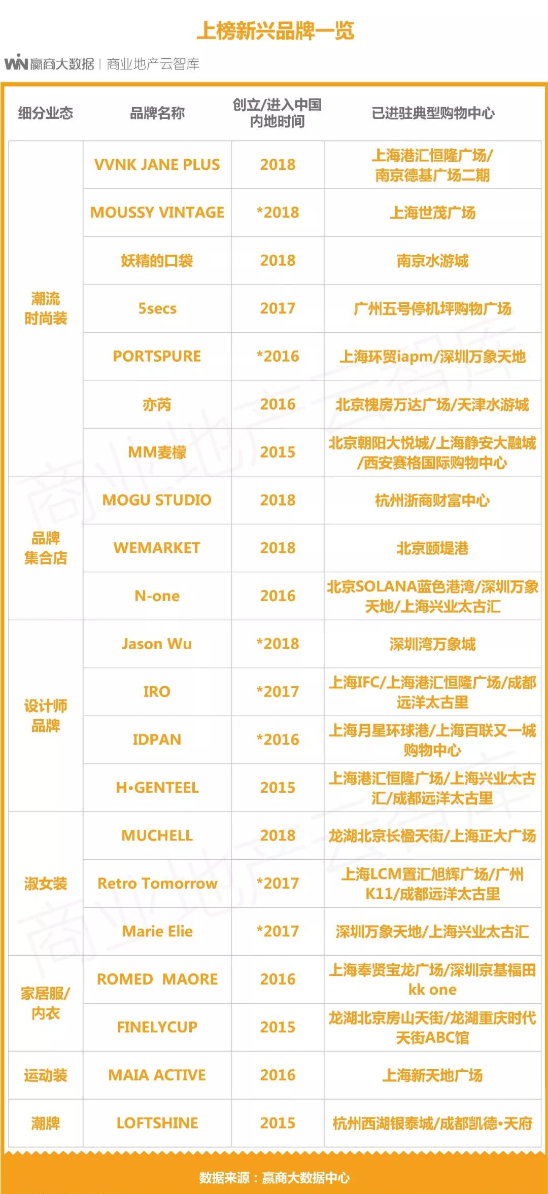 (新兴品牌界定:近3年进驻中国内地购物中心的品牌)