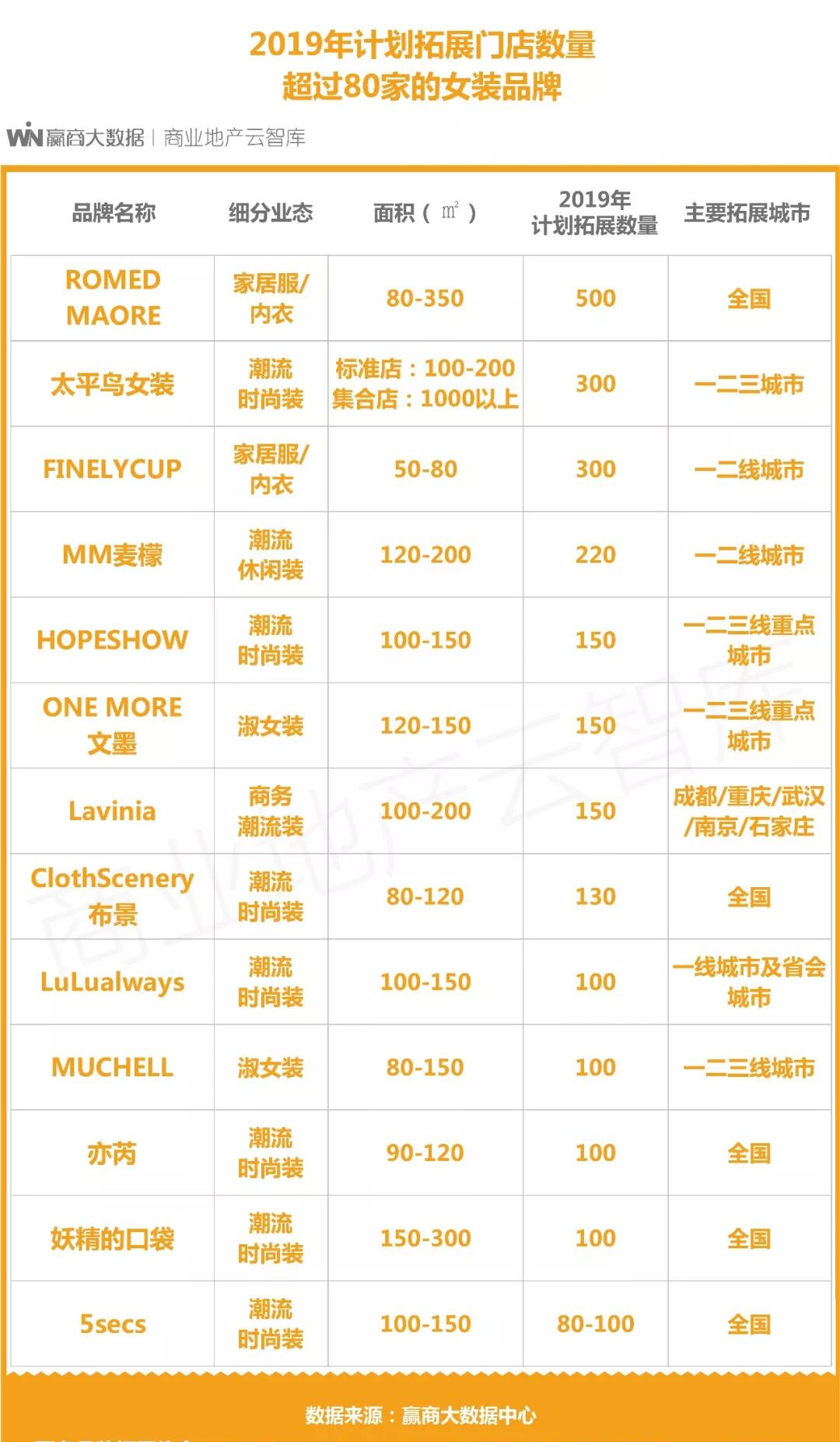 ❸ 2019年强势拓店的服饰品牌(计划拓展门店数量超过80家)