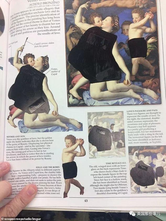 女神维纳斯的肉体被用黑色的马克笔遮挡了。