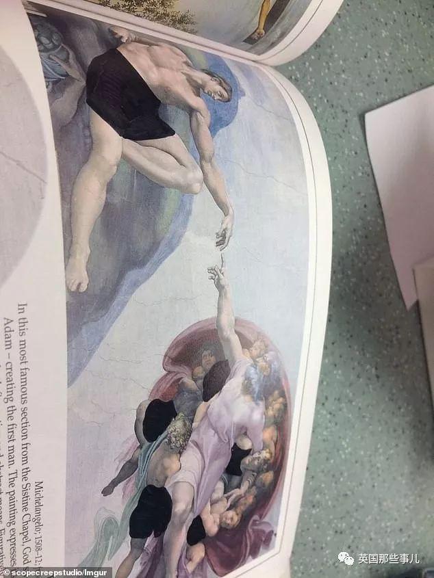 可是只有打开书之后才会发现,在这本书中包括达芬奇画作蒙娜丽莎在内的所有画作,都被校方做了“二次修改”。