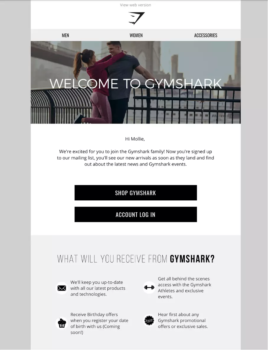 而这一系列活动都在强化GymShark用户的社区意识。在整个GymShark的营销活动中,“社区”的概念十分重要,用户注册他们的邮件列表或购买产品,该品牌就会欢迎用户加入他们。
