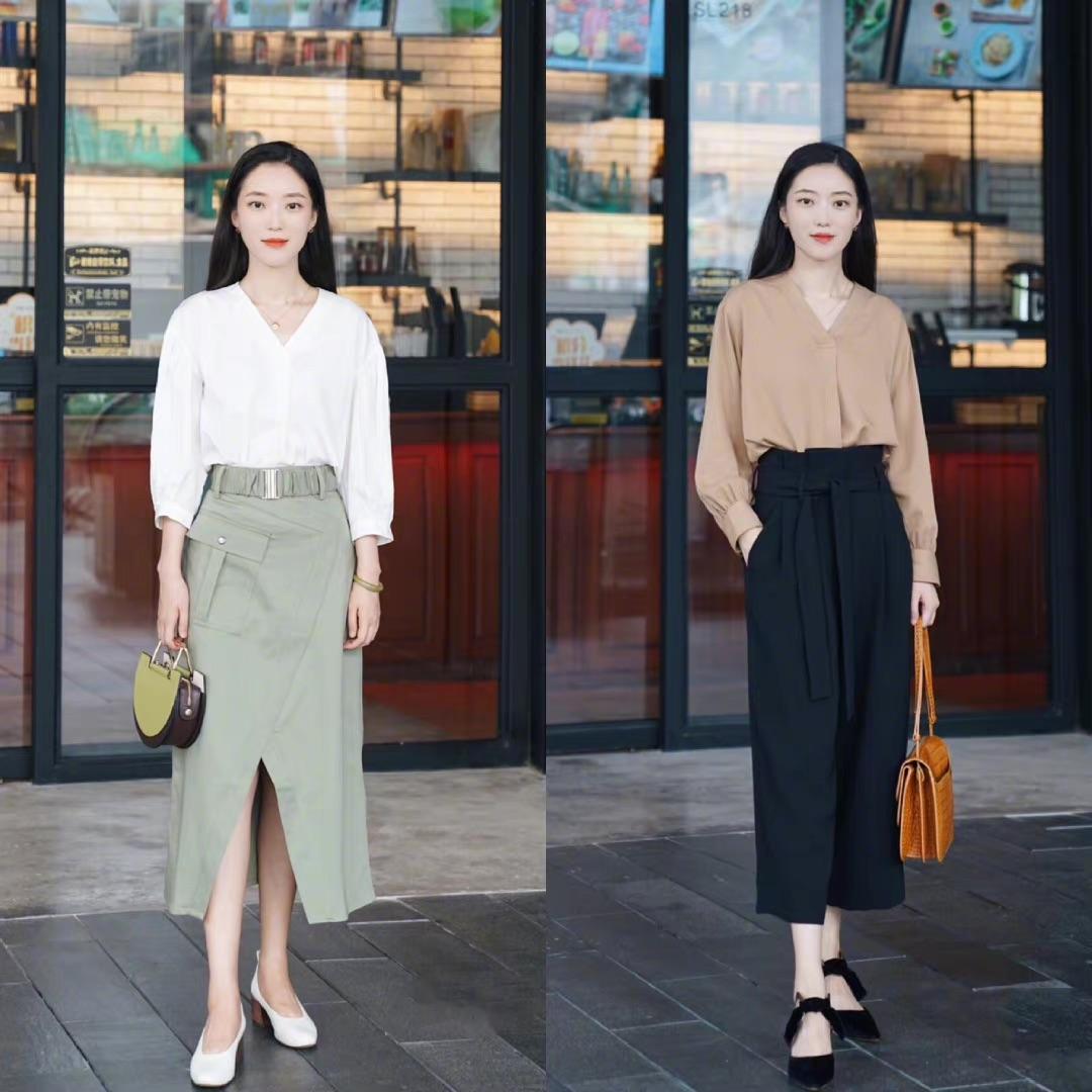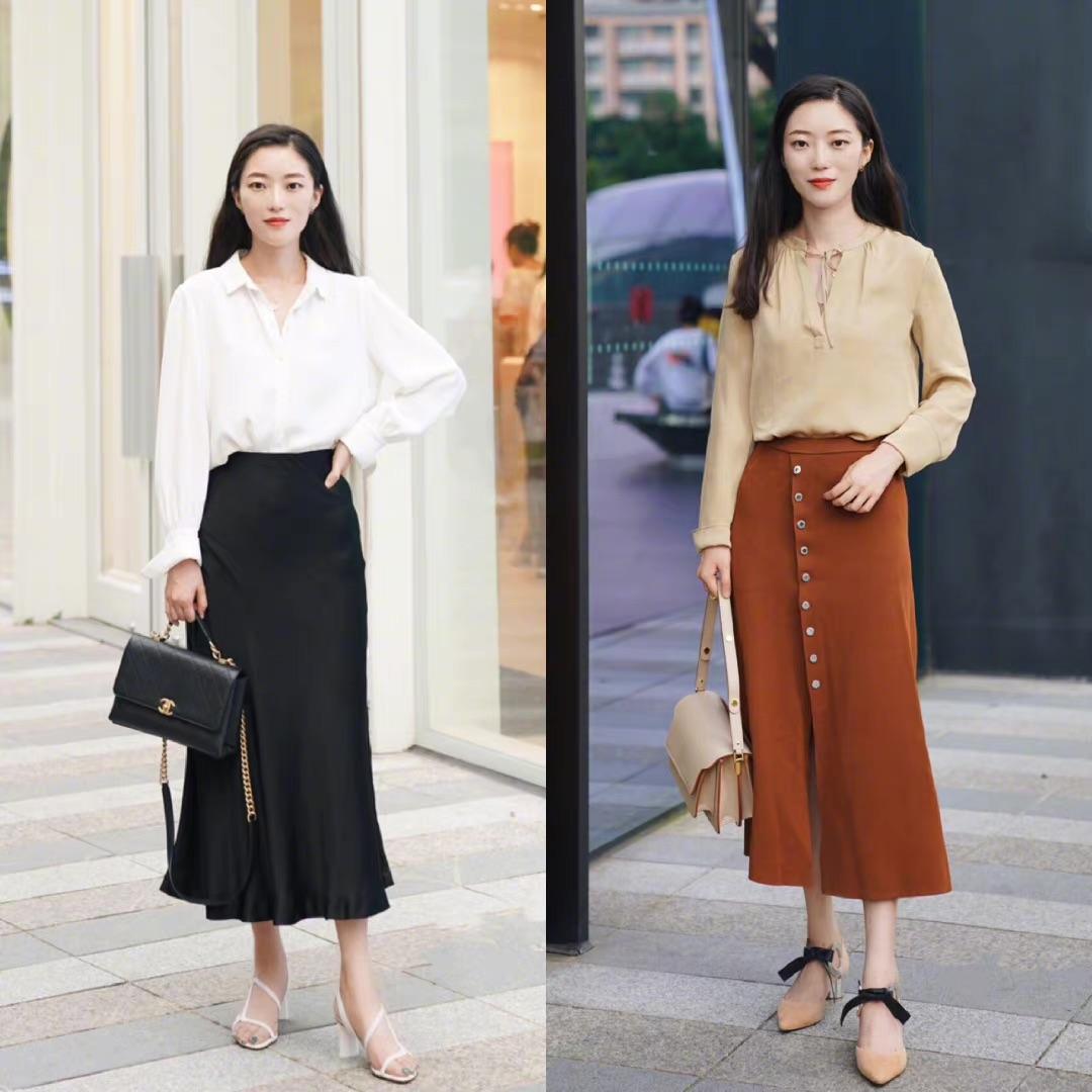 不管是半身裙,还是九分裤,亦或者七分裤。在夏末秋初的季节,都是特别适合职场新人的单品。宽松的衬衫,可以搭配高腰的半身裙,下摆开叉的半身裙,时髦又有女人味。