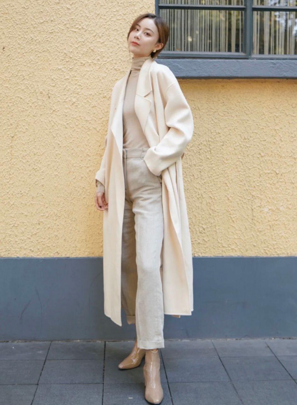 如果是将基础色用于全身的话,一定要记住整体的造型,要少用深色多用浅色,饱和度比较低的颜色,看上去会更加舒适放松,没有深色那么沉闷压抑,而且对于肤色的提亮果也很不错。在视觉感官上,浅色调比深色调更加清新简约,不管是用于打底衫、大衣还是裤装当中都很耐看。