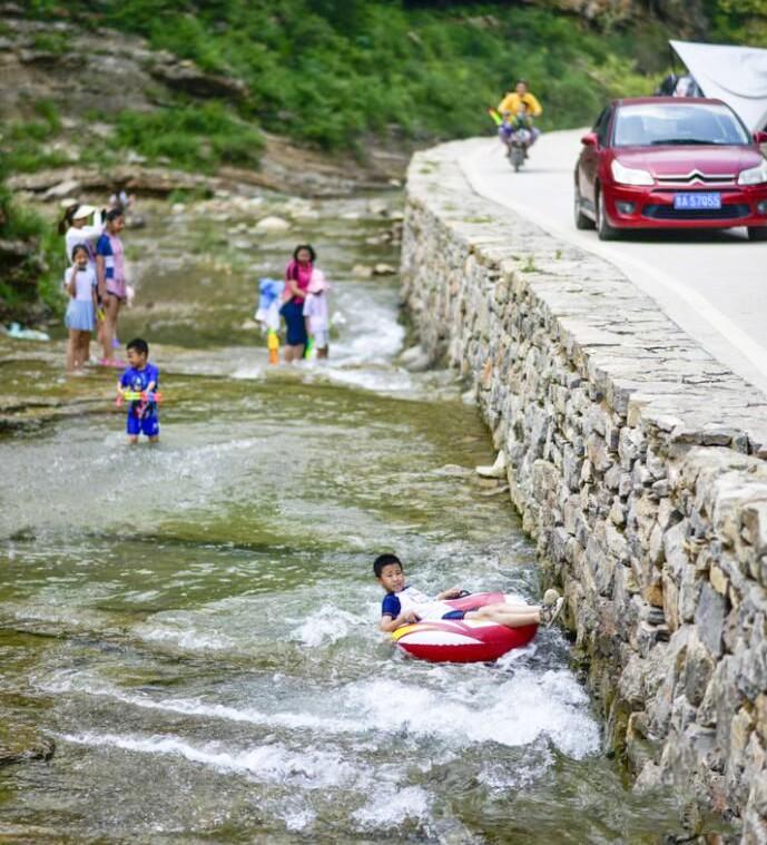 佛峪沟自带天然“空调”,把酷热喧嚣都挡在了山谷外。流水潺潺,树影婆娑,微凉的山风把暑气全都吹走,捞起山泉中冰镇的啤酒饮料水果,感受由内而外的清凉。