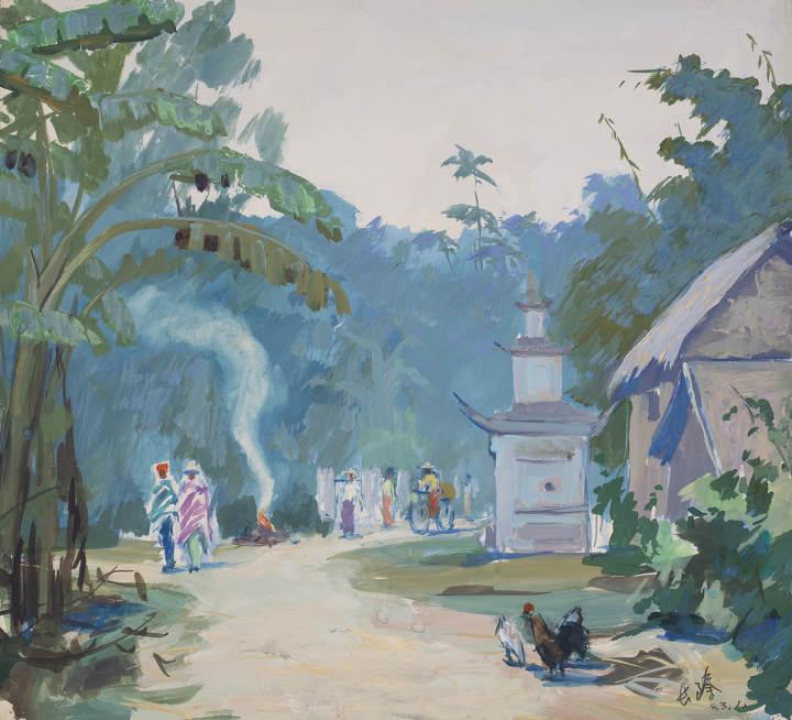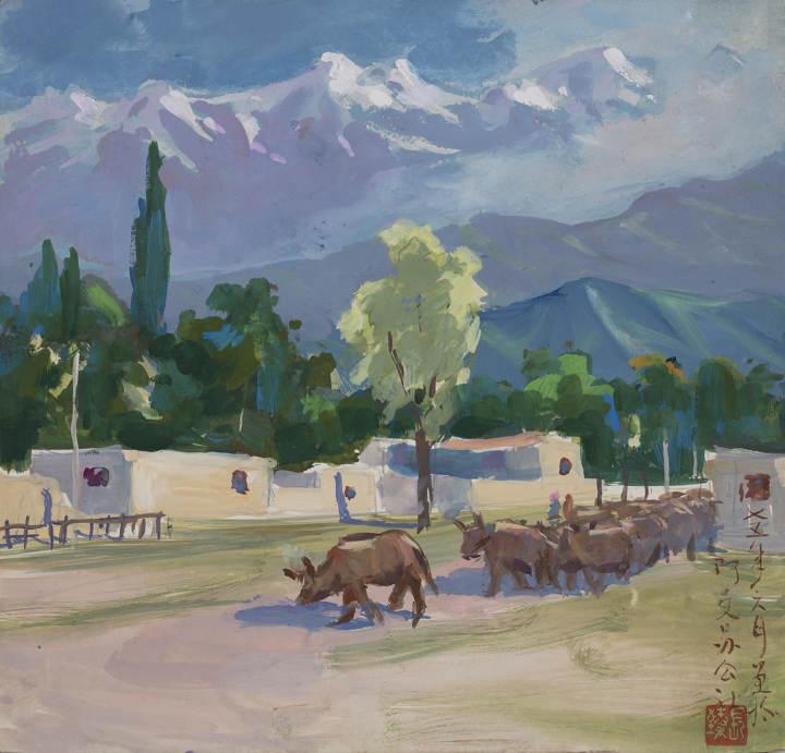 阿克苏公社 潘长臻 水粉画 19.5cm×20.5cm 1975